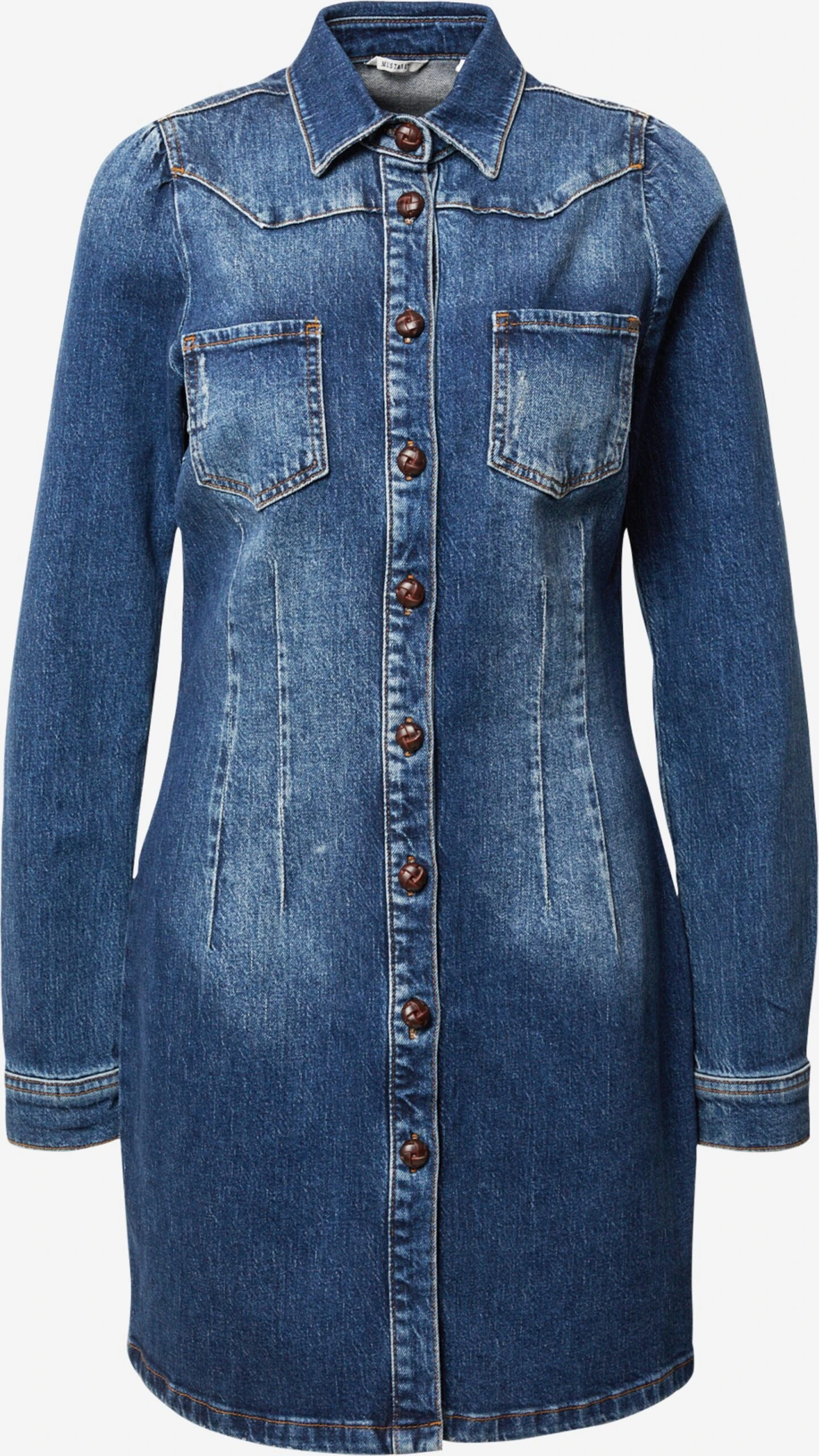 EffenDenimKentkraag1-knoops manchettenKnop placketBorstzakContrasterende nadenVaste gripKnoopsluiting