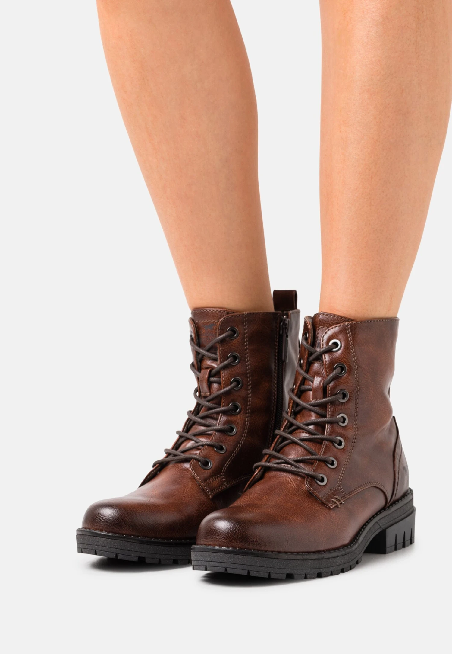 Mustang Enkellaarsjes Met Plateauzool – Cognac