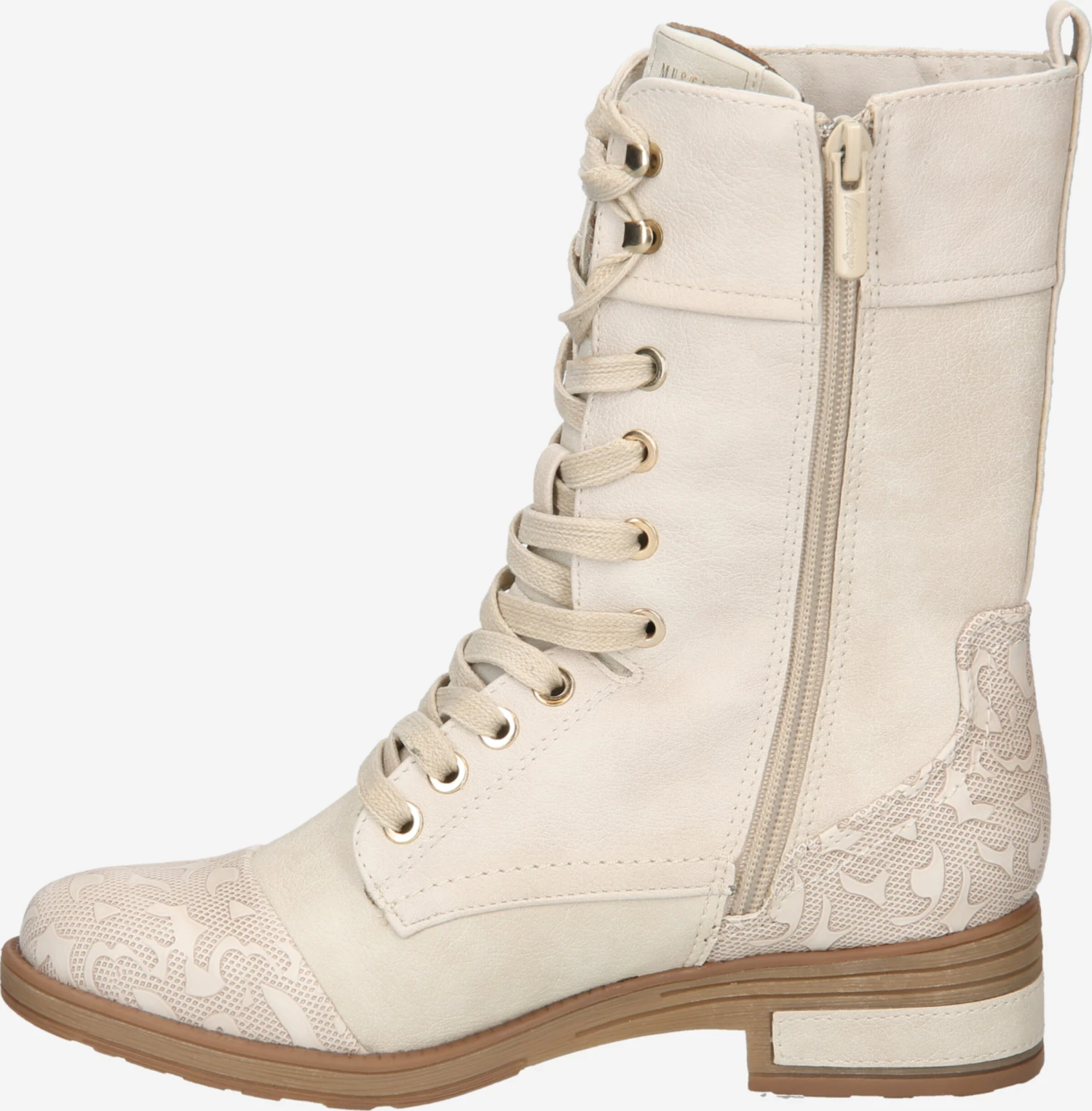 EffenBlokhakRonde neusRitszakken aan de zijkantVersterkte hakHielbandStevige stofFlexibele zoolMetalen oogjesImitatieleerSnoersluiting
