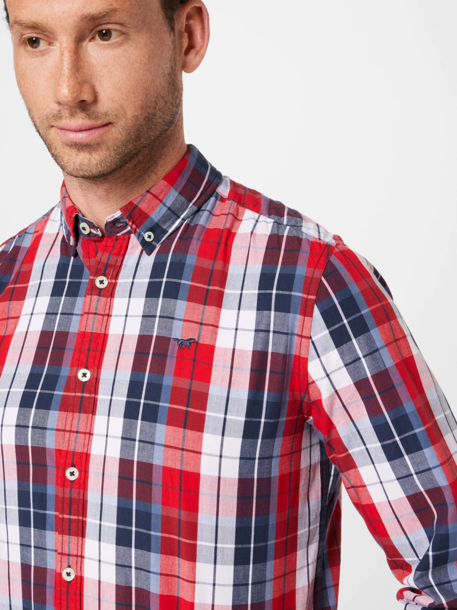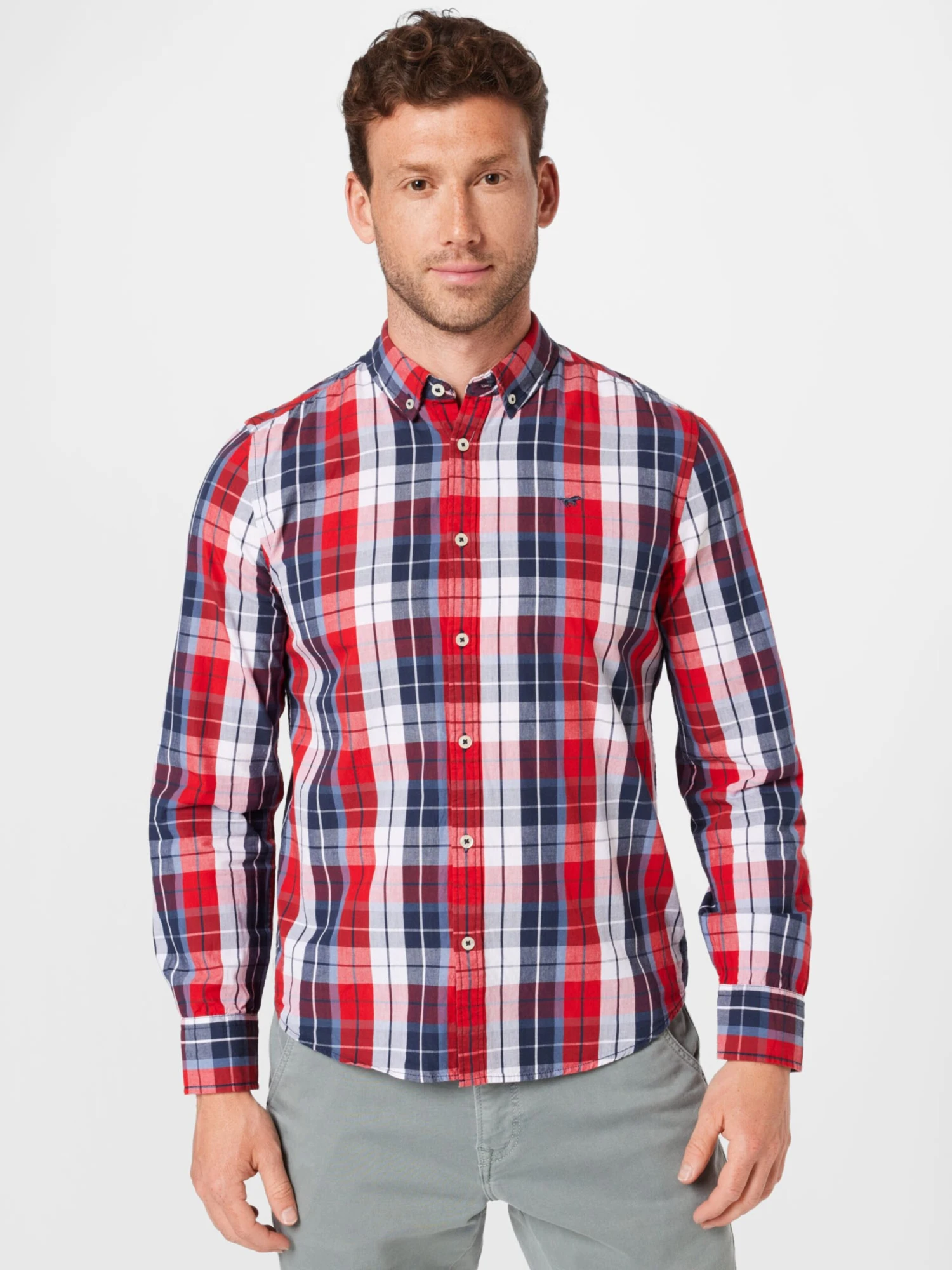 GeruitKatoenButton-down2-knoops manchettenSchuine manchettenPlacketTurn-down kraagAll-over patroonLabel borduurwerkVoelt zacht aan
