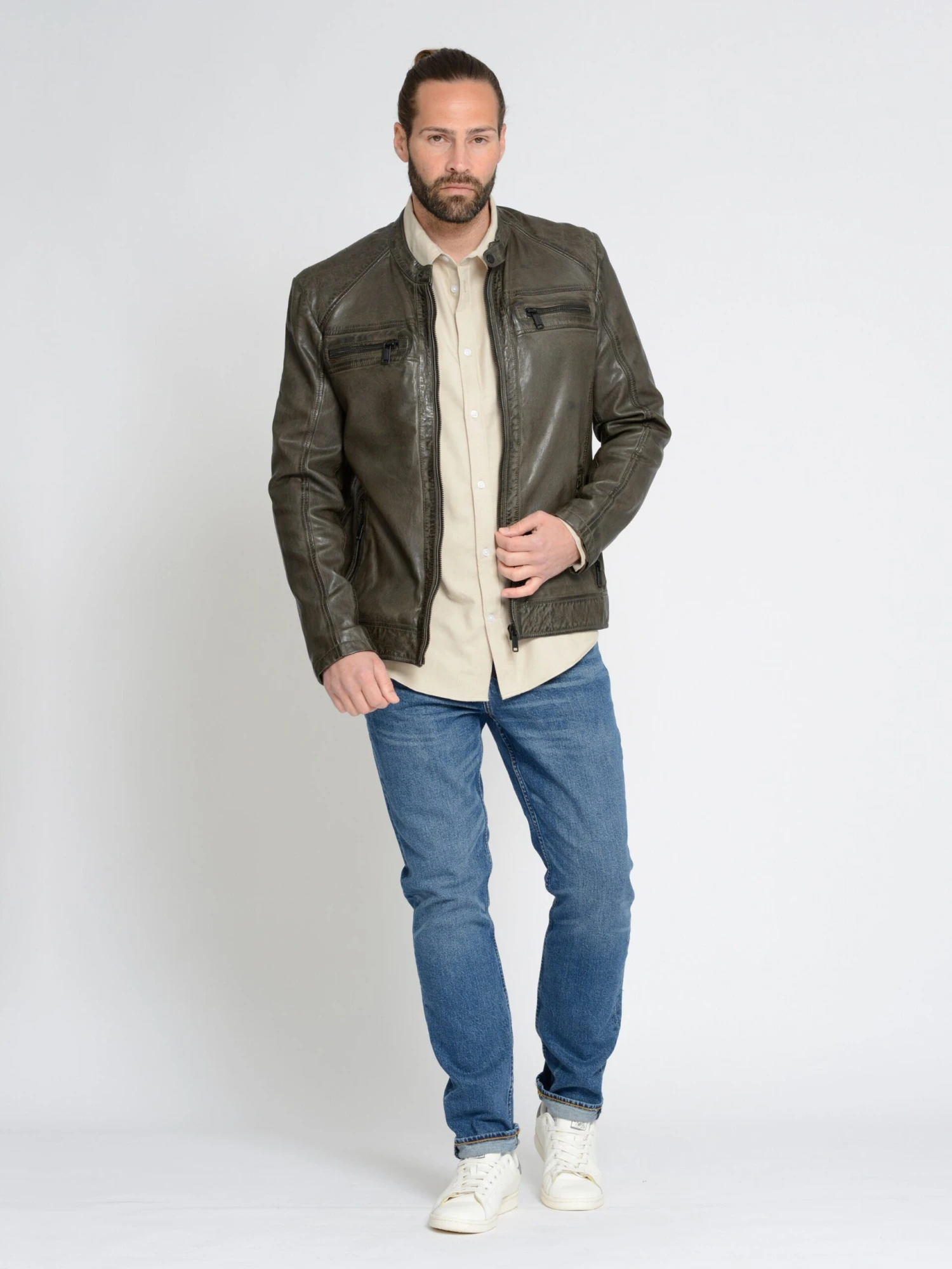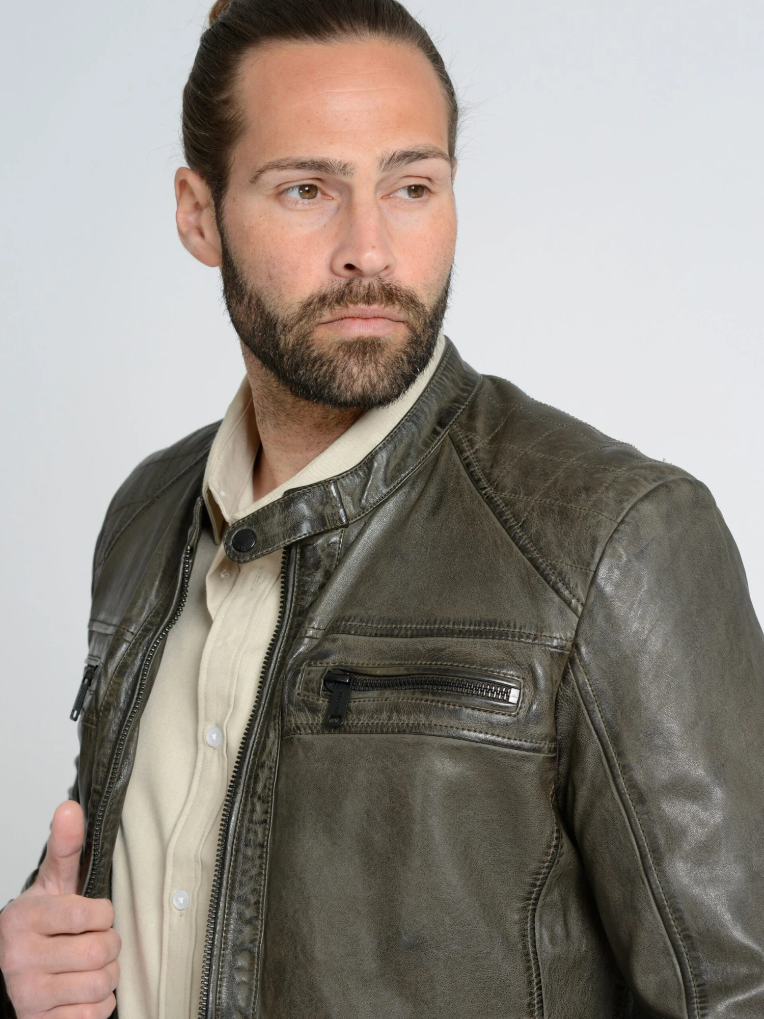 Buitenmateriaal: 100% LamsleerVoering: 100% KatoenMouwvoering: 100% Polyester – PESZakvoering: 100% KatoenBevat niet-textiele delen van dierlijke oorsprong: Ja