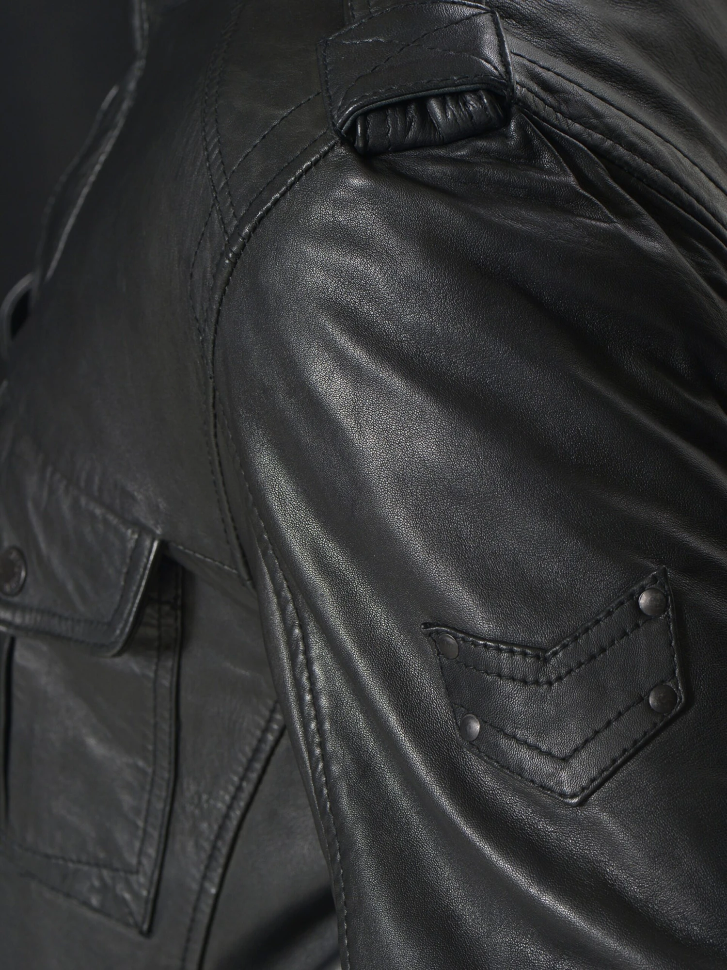 EffenLeerBikerjackDrukknopenContrast voeringStaande kraagDeelnadenVerborgen ritsBorstzakBinnenzakOpzet-/flapzakZakken aan de zijkantAfneembare kraagLabel plaatjeGlanzendPaillettenOp staal nadenLicht gevoerd