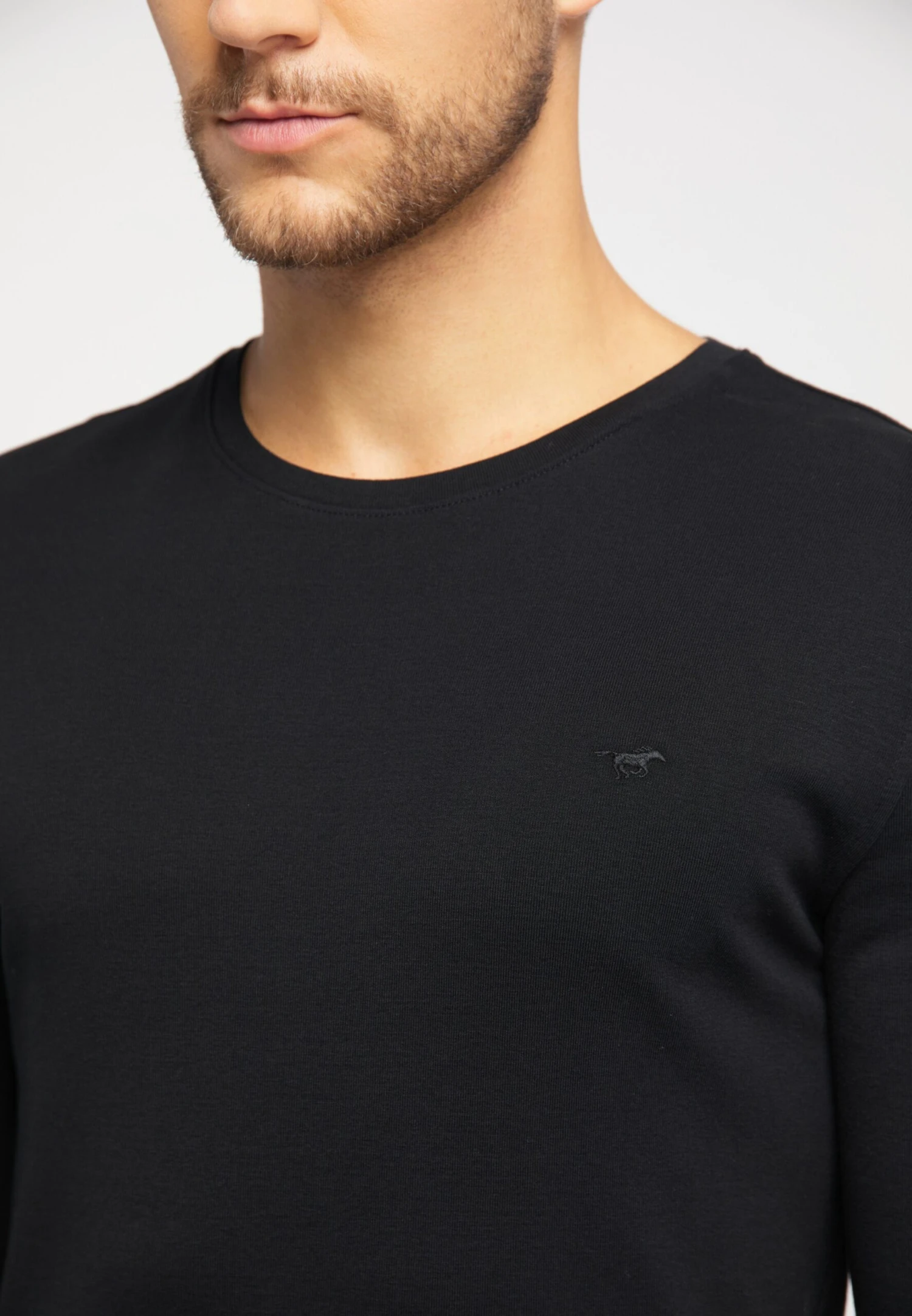 EffenJerseyRonde halsGevoerde zoom/randGeribbelde kraagRechte zoomRecht modelLabel borduurwerkOp staal nadenVoelt zacht aan