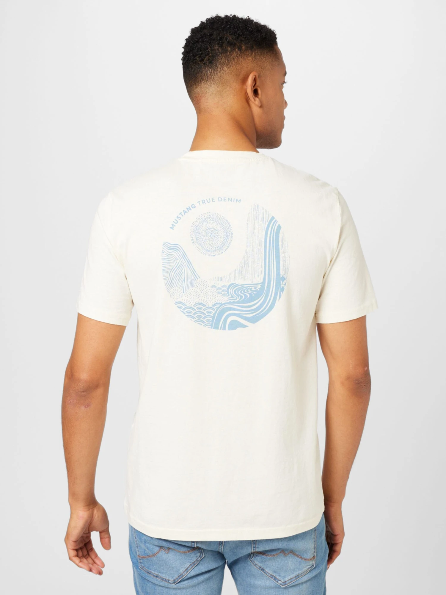 MotiefprintJerseyRonde halsGevoerde zoom/randGeribbelde kraagRechte zoomNektapeOp staal nadenVoelt zacht aanLabel print